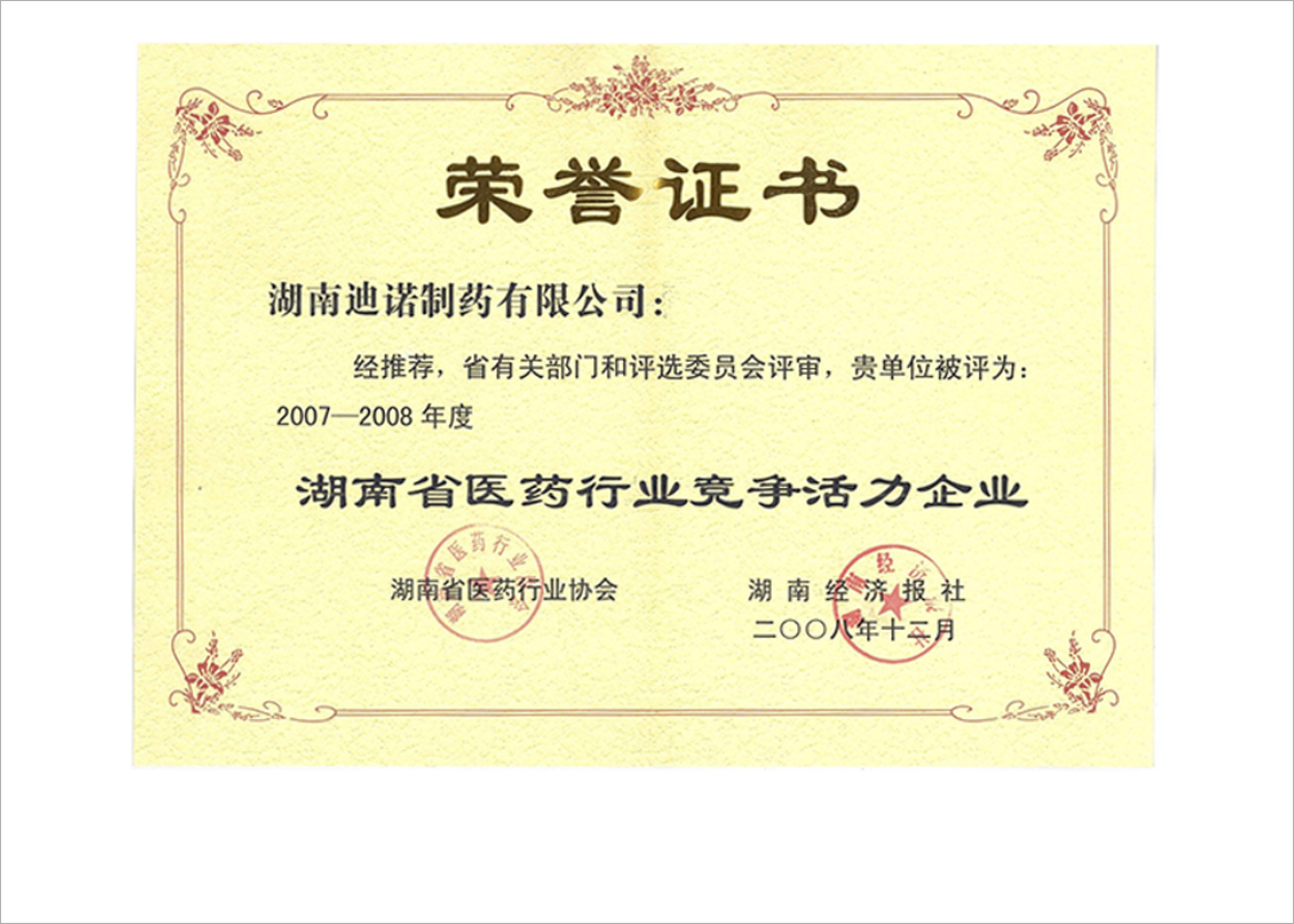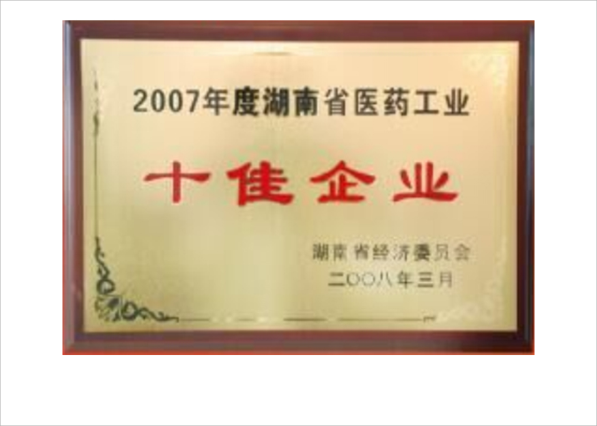 湖南省医药工业十佳企业(2007年度)