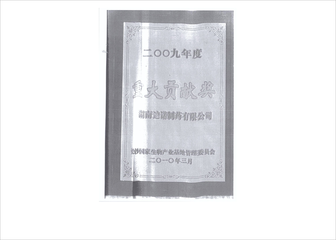 浏阳医药园重大贡献奖(2009年度)