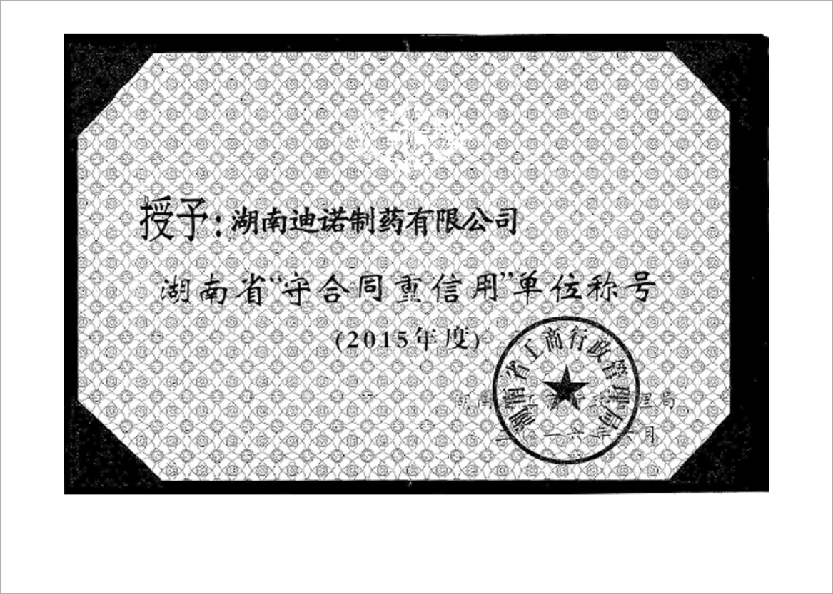 湖南省守合同重信用单位(2015年度)